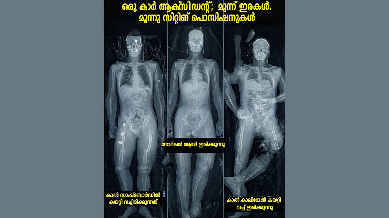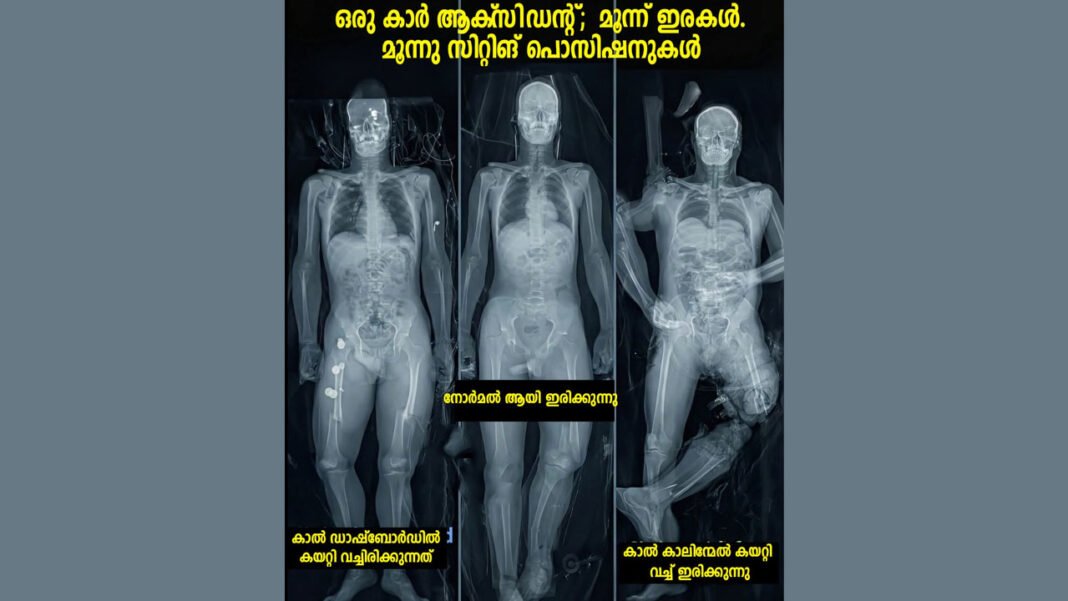 ഒരേ കാറിൽ സഞ്ചരിക്കുന്നവരാണെങ്കിലും, അപകടസമയത്ത് ഇരിക്കുന്ന രീതി (Posture) അനുസരിച്ച് പരിക്കിന്റെ തീവ്രത മാറും. ശരിയായി ഇരുന്നയാൾക്ക് നിസ്സാര പരിക്കുകൾ മാത്രം സംഭവിക്കുമ്പോൾ, തെറ്റായി ഇരുന്നയാൾക്ക് അത് ജീവഹാനി വരെ ഉണ്ടാക്കിയേക്കാം.