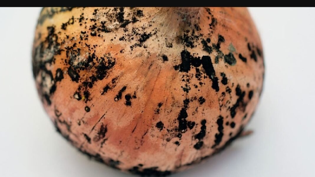 സവാളക്ക് അകത്തും പുറത്തുമായി കാണപ്പെടുന്ന ഈ കറുത്ത പാടുകള് ഒരു തരം പൂപ്പലാണ്. ആസ്പര്ജില്ലസ് നൈഗര് എന്നറിയപ്പെടുന്ന ഈ പൂപ്പല് മണ്ണിലാണ് പൊതുവേ കാണാറുള്ളത്. ഈ ഫംഗസ് ചെടികളെ ധാരാളമായി ബാധിക്കുന്നതാണ്. ഇതാണ് സവാളയിലും കാണപ്പെടുന്നത്. വായുസഞ്ചാരം കുറഞ്ഞതും ഈര്പ്പം കൂടുതലുമുള്ള ഇടങ്ങളില് നിന്നാണ് ഈ ഫംഗസ് പെരുകുന്നത്. വലിയ അപകടം വിളിച്ചുവരുത്തുന്നില്ലെങ്കിലും ഇവ ശ്രദ്ധിക്കേണ്ടതുണ്ട്.
