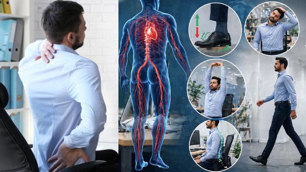 തുടർച്ചയായി ഇരിക്കുന്നത് കാലുകളിലേക്കുള്ള രക്തപ്രവാഹം തടസ്സപ്പെടുത്തുകയും വെരിക്കോസ് വെയ്ൻ, കാലിലെ വീക്കം, രക്തം കട്ടപിടിക്കൽ തുടങ്ങിയ പ്രശ്നങ്ങൾക്ക് കാരണമാകുകയും ചെയ്യാം. ഇതിന് പരിഹാരമായി വിദഗ്ധർ നിർദ്ദേശിക്കുന്നത് ഓരോ മണിക്കൂറിലും കണങ്കാൽ മുകളിലേക്കും താഴേക്കും ഏകദേശം 30 തവണ ചലിപ്പിക്കുന്നതാണ്. വെറും 30 സെക്കന്റ് മാത്രം വേണ്ടിവരുന്ന ഈ ലഘുവ്യായാമം രക്തപ്രവാഹം മെച്ചപ്പെടുത്താനും പേശികൾക്ക് കരുത്ത് നൽകാനും സഹായിക്കും.